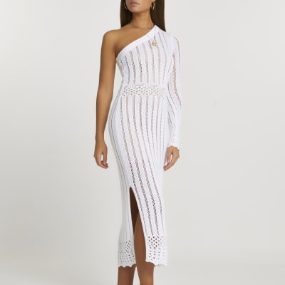 White Crochet Knit Midi Dress WHISTLES